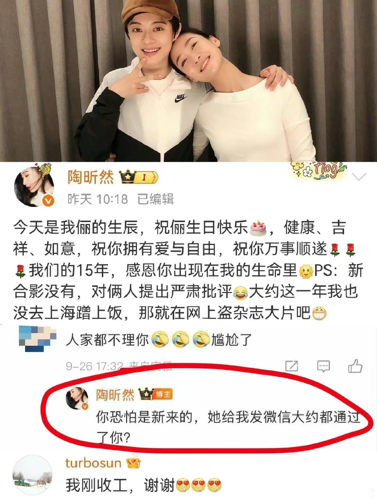19. 当天还发生了一个小插曲:陶昕然发布了一篇饱含深情的长文为她庆生。